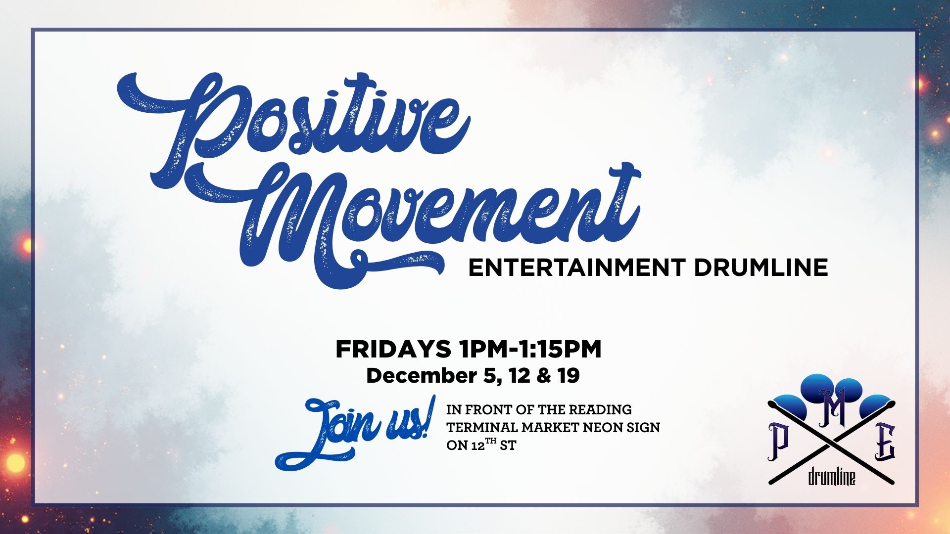 Positive Movement is a non-profit drill team and entertainment group. Their sole focus is to inspire and encourage young people to find a safe haven in drumming and spread a positive message throughout the city of Philadelphia. They do this in the hopes of decreasing gun violence and giving the next generation of sense of leadership and purpose.
