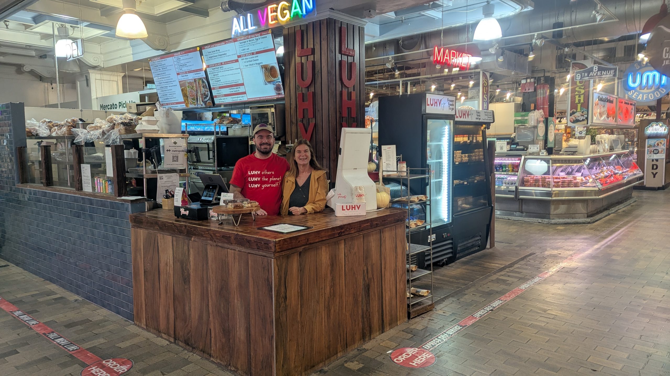 LUHV is a family run business and the first fully vegan stand at Reading Terminal Market and the first vegan deli on the east coast. LUHV offers fresh vegan and gluten-free items made locally for your health and soul, serving traditional deli favorites and overstuffed hot sandwiches. In a brand-new location three times the size of its former space, LUHV will add fresh, frozen, and microwavable prepared meals and LUHV pantry ingredients alongside its existing array of ready-to-eat vegan menu items and deli products. These new offerings also bring a selection of innovative meal options designed primarily to support various dietary and medical restrictions like heart disease, cancer, renal, and diabetes diets. All products will always be 100% vegan and certified Kosher.