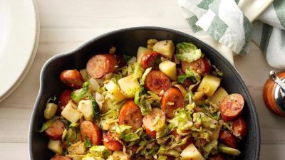 Beef and Vegetable Stew with Pasta Kale and Citrus Salad Pan-Seared Salmon Steaks with Roasted Sweet Potatoes & Steamed Broccoli Seafood Spaghetti With Mussels and Shrimp Spinach and Feta Chicken Sausage with Roasted Potatoes & Sautéed Green Beans